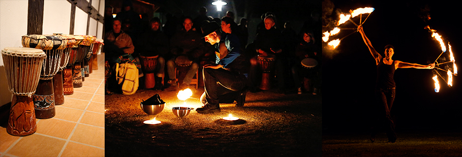 Feuer und Musik zum Mitmachen? Das können Sie beim Mitmachevent "TrommelFeuer" erleben! Mehrere dutzend Djembetrommeln im großen Trommelkreis laden zum Mitmachen ein. Unter fachkundiger Anleitung werden einfache Rythmen angestimmt und sorgen somit für ein wunderschönes Klangerlebnis. Im OpenFireSpace hingegen können sich mutige Besucher an der Feuerjonglage versuchen, natürlich unterstützt durch unsere professionellen Feuerkünstler!